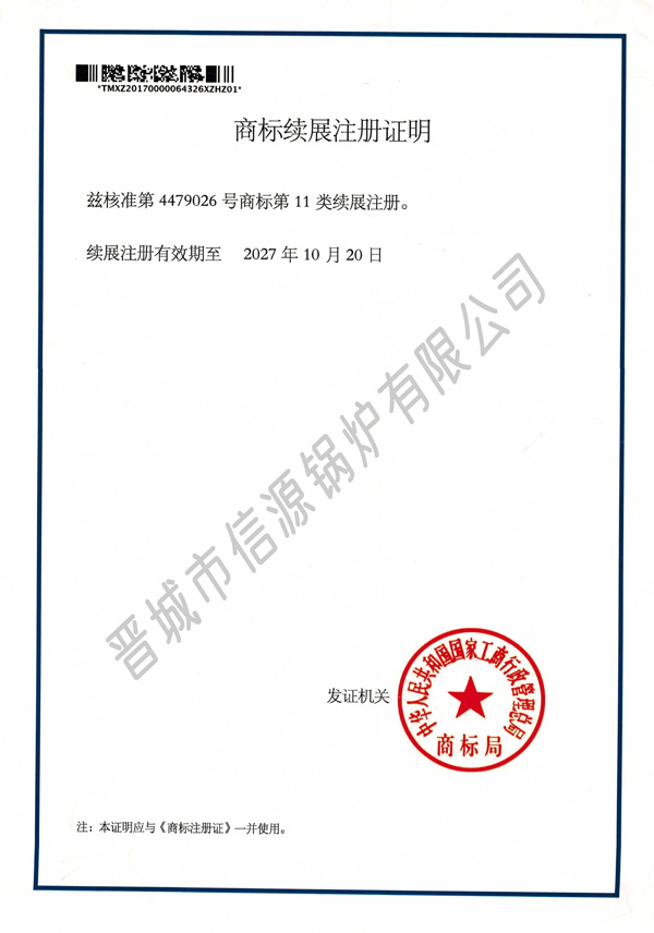 商標(biāo)續(xù)展注冊(cè)證明