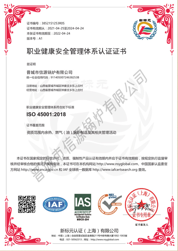 職業(yè)健康安全管理體系認(rèn)證證書(shū)